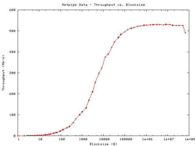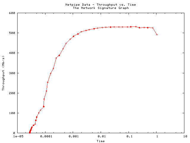 Greatest throughput at 531.57 Mbps: 122: 8388608 bytes 7 times --> 531.57 Mbps in 0.120399 sec